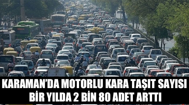 TÜİK Konya Bölge Müdürlüğünden yapılan açıklamaya göre; 2021 yılı Mart ayı sonu itibarıyla Karaman’daki toplam 93 bin 892 motorlu kara taşıtının; %40,0’ı (37 bin 593 adet) otomobil, %1,9’u (1 738 adet) minibüs, %0,6’sı (578 adet) otobüs, %13,5’i (12 bin 686 adet) kamyonet, %2,7’si (2 bin 581 adet) kamyon, %27,7’si (25 bin 977 adet) motosiklet, %0,3’ü (288 adet) özel amaçlı taşıtlar ve %13,3’ü (12 bin 451 adet) de traktörlerden oluşmaktadır.