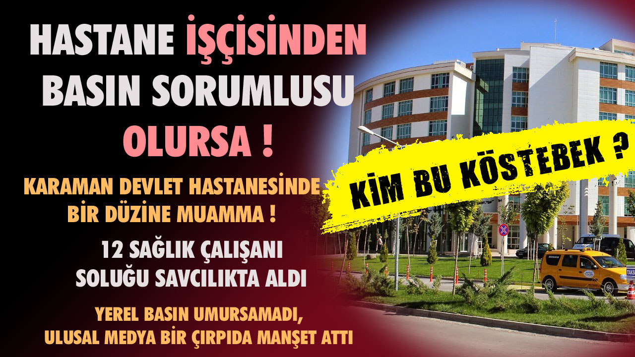 İddia sahibi ise, Hastanenin basın sorumlusu olunca işler karmakarışık bir hal aldı. Geçtiğimiz haftalarda Karaman Karaman Eğitim ve Araştırma Hastanesinde işçi olduğu öğrenilen basın sorumlusu Hüseyin Karagöz isimli şahıs, hastanede 12 çalışan personeli isimleri ile birlikte yaptığı eylemler hakkında iddialarda bulunarak yazılı bir metin halinde Karaman medyası ile paylaştı.