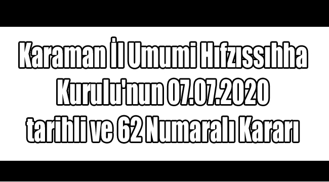 Karaman İl Umumi Hıfzıssıhha Kurulu, 06.05.1930 tarih ve 1593 sayılı “Umumi Hıfzıssıhha Kanunu’nun 23. maddesinde belirtilen üyelerin katılımı ile 07.07.2020 tarihinde olağanüstü toplanmıştır.