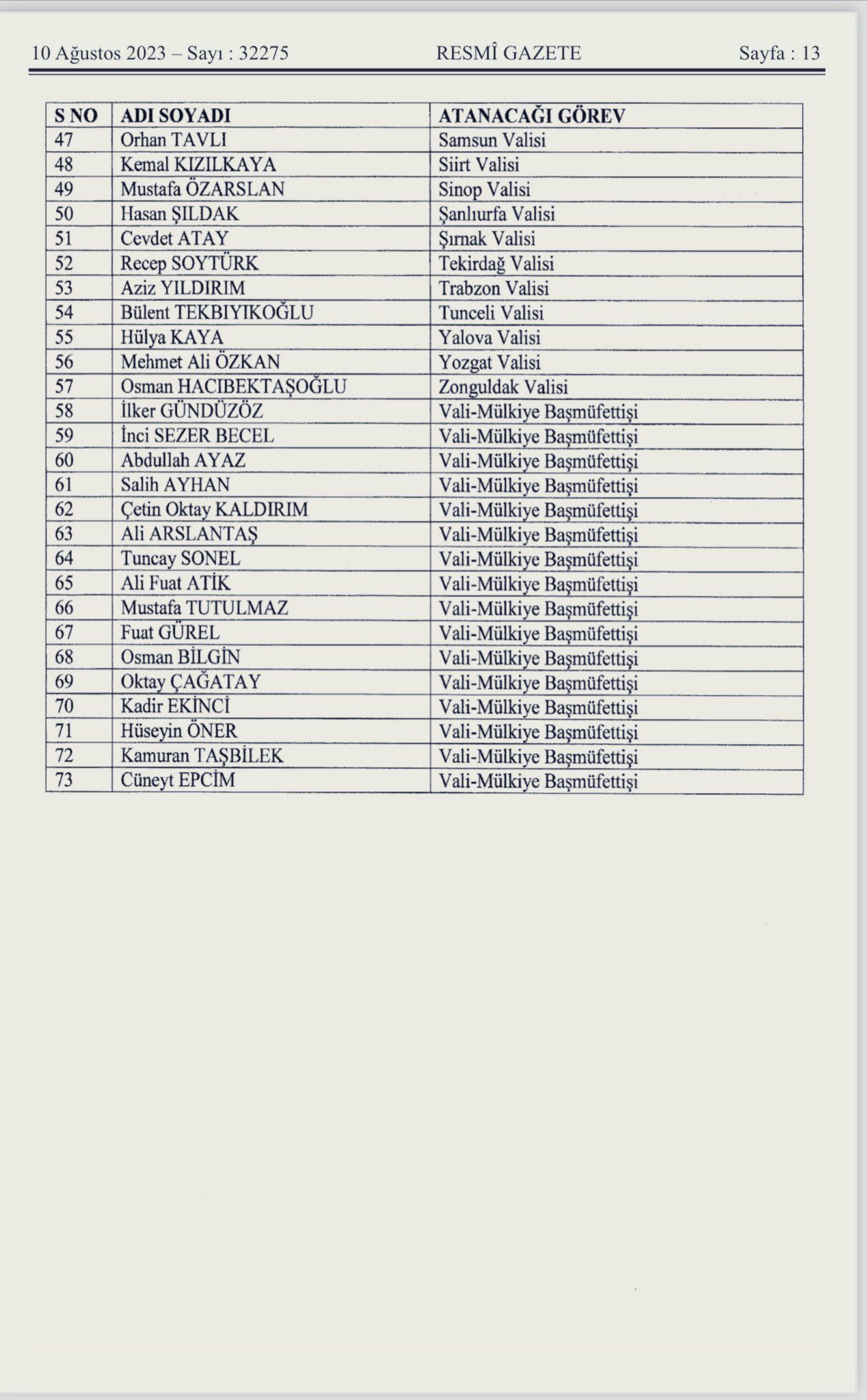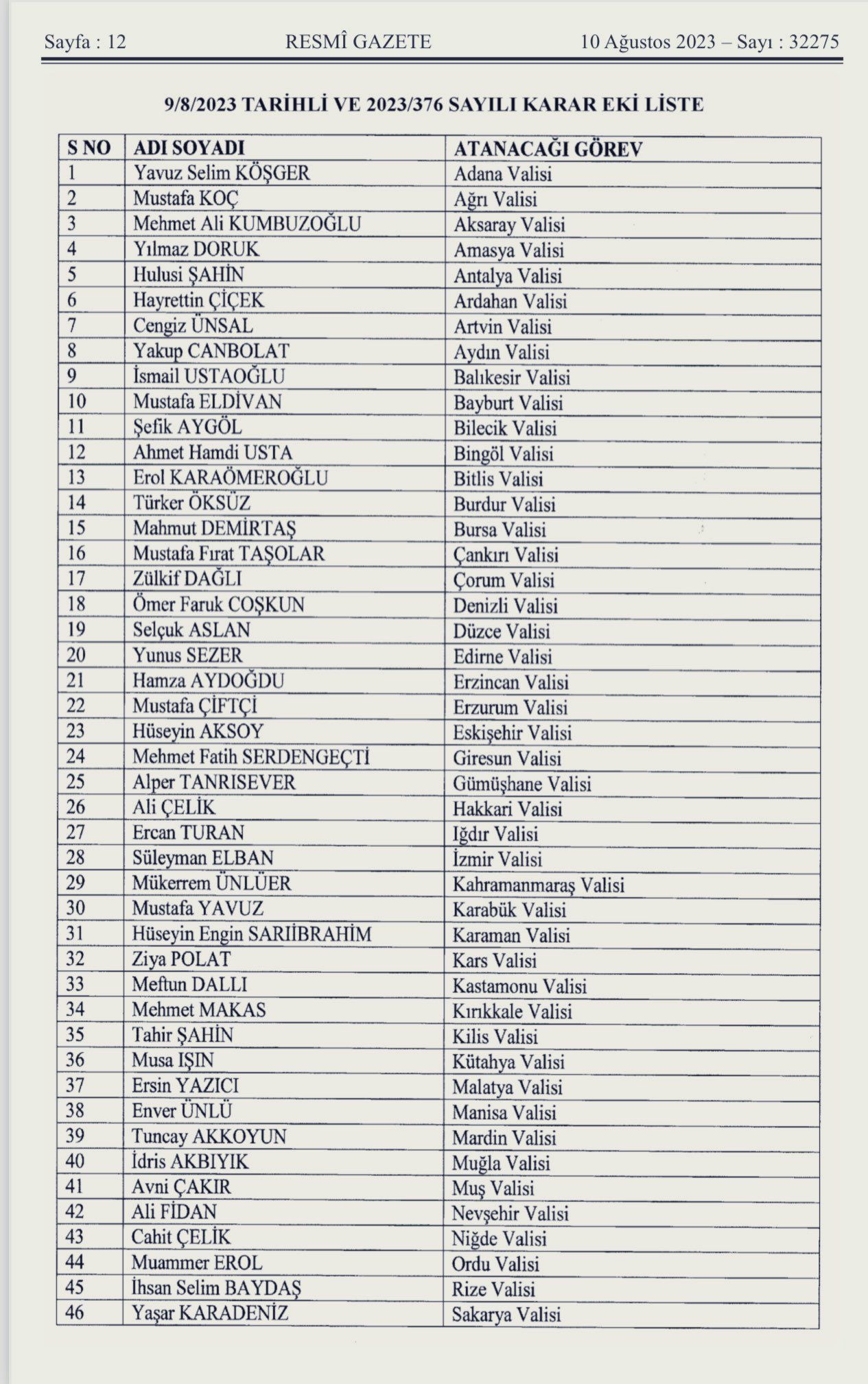 Buna göre; Karaman Valisi Tuncay Akkoyun Mardin Valisi olurken,