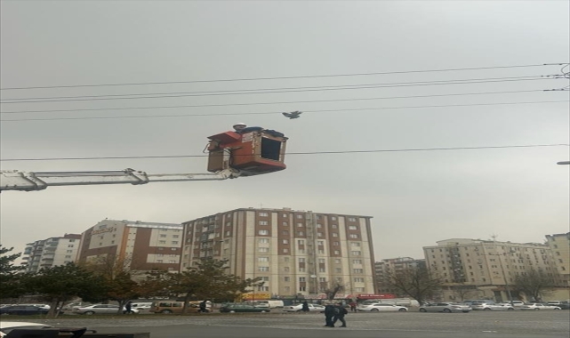 Kayseri'nin Melikgazi ilçesinde elektrik teline takılarak mahsur kalan bir güvercin itfaiye ekiplerince kurtarıldı.Gülük Mahallesi Yunus Emre Caddesi'nde bulunan elektrik direğindeki tele ayağı takılarak mahsur kalan güvercini gören vatandaşlar ihbarda bulundu.Olayın ardından bölgeye giden Kayseri Büyükşehir Belediyesi İtfaiye Daire Başkanlığı ekipleri, güvercini kurtardı.Sağlık durumu iyi olduğu öğrenilen kuş, yeniden doğaya salıverildi.