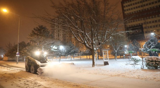 Kayseri Kocasinan'da yolların kapanmaması için çalışmalarını aralıksız sürdüren belediye ekipleri, sorumluluk bölgelerinde 24 saat esasına göre çalışıyor.