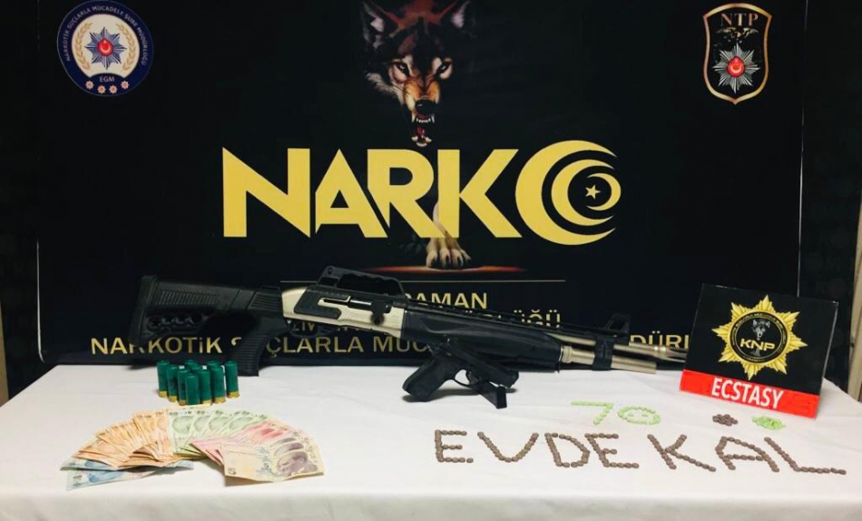 Yapılan aramalarda 1 adet tabanca, 1 adet tüfek, 10 adet fişek, 245 adet ectasy hap ve 1145 TL suçtan elde edilmiş gelir ele geçirildi. Gözaltına alınan şahıslar emniyeteki sorgu ve yapılan sağlık kontrollerinin ardından Karaman Adliyesine sevk edildi.