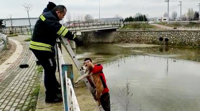 Kocaeli'de İzmit ilçesi Kumla deresine düşen sokak köpeklerini Büyükşehir Belediyesi itfaiye ekipleri kurtardı.