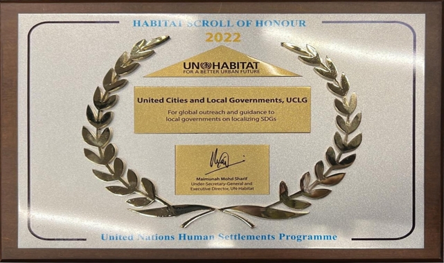 Birleşmiş Kentler ve Yerel Yönetimler Dünya Teşkilatı (UCLG) Eş Başkanı ve Konya Büyükşehir Belediye Başkanı Uğur İbrahim Altay'a "BM UN-Habitat Onur Parşömeni Ödülü" verildi.Belediyeden yapılan yazılı açıklamada, Küresel Dünya Habitat Günü etkinlikleri kapsamında Birleşmiş Milletler (BM) İcra Direktörlüğü Başkanlığı ve Balıkesir Büyükşehir Belediyesinin ev sahipliğindeki programın, Çevre, Şehircilik ve İklim Değişikliği Bakanı Murat Kurum, Dünya Etnospor Konfederasyonu Başkanı Bilal Erdoğan, BM Genel Sekreter Yardımcısı ve UN-Habitat İcra Direktörü Maimunah Mohd Sharif, belediye başkanları ve çok sayıda ülkeden temsilcilerin katılımıyla gerçekleştirildiği belirtildi.Açıklamada görüşlerine yer verilen Altay, misafirperverliğinden dolayı UCLG-MEWA Başkan Yardımcısı ve Balıkesir Büyükşehir Belediye Başkanı Yücel Yılmaz'a ve Sharif'e teşekkür ettiği belirtildi.Başkan Altay, ödülü başkanlığını ve eş başkanlığını yürüttüğü UCLG adına aldığını belirterek, şunları kaydetti:"Dünya Belediyeler Birliği yedi kıtada, 240 binden fazla üyesi olan yerel yönetimlerin en güçlü örgütü. BM'de de yoğun bir çalışma yürütüyoruz. Özellikle Sürdürülebilir Kalkınma Hedefleri'nin şehirlerimizde uygulanmasıyla ilgili bugüne kadar çok gayret gösterdik bundan sonra da göstermeye devam edeceğiz. Ayrıca salgın döneminde ve iklim değişikliğinde gördük ki yerel yönetimler, merkezi hükümetlerin en önemli paydaşları. Kriz anında birlikte hareket etmemiz bizim için kıymetli ve önemli. Ayrıca bu yıl Habitat'ın da mottosu olan 'Boşluğa Dikkat Et, Kimseyi ve Hiçbir Yeri Geride Bırakma' yerel yönetimlerin ve UCLG'nin en önemli önceliklerinden birisi. Böyle bir ödülü almak bizim için çok kıymetli. Tüm UCLG ailesi adına teşekkür ediyorum."