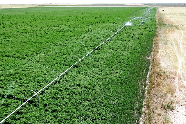 ABDULLAH DOĞAN - Konya'da son dönemde kullanımı artan kendinden motorlu ve alüminyum boru üzerine monteli fıskiyelerle tarla sulama imkanı sağlayan sistem, çiftçinin işini kolaylaştırıyor. Tarımda modernizasyon ve teknolojik gelişmeleri Konya'daki çiftçiler yakından takip ediyor. Sektördeki yeniliklere ayak uydurmaya çalışan Konya Ovası'ndaki üreticiler, tarla bitkileri yetiştirmede iş gücü ve enerji sarfiyatında tasarruf sağlayan sulama sistemlerini tercih ediyor.Yemlik bitki ve hububat ekili arazilerin sulamasında kullanımı yaygınlaşan motorlu sulama sistemi, bu yeniliklerin başında geliyor.Sulama tesisatının yer değişimini ortadan kaldıran, kendinden motorlu ve alüminyum boru üzerine monte edilen fıskiyeli sistem, iş gücü ve enerji sarfiyatında kullanıcısına avantaj sağlıyor.- "Elektrik sarfiyatında yüzde 50'ye yakın azalma var"Merkez Karatay ilçesi Çengilti Mahallesi'nde çiftçilik yapan 48 yaşındaki Ali Yıldız, AA muhabirine, tarlasına 3 yıl önce motorlu sulama sistemi kurdurduğunu söyledi.İş gücünde ve enerji sarfiyatında önemli avantaj sağlayan sistemin, hibe programı ve kredi desteği kapsamında aldığını anlatan Yıldız, "Basit bir sistem ama insan gücü ve enerji sarfiyatında yüzde 70 oranında avantaj sağlıyor. Girdi masraflarımızda bu sistem sayesinde önemli oranda düşüş var. Gören çiftçiler soruyor, bilgi alıyor. Bölgede kurduranlar var." diye konuştu.Yıldız, 210 dekar yonca ekili arazisinin bir işçiyle sulandığını belirterek, "Normal burayı 4-5 işçiyle suluyorduk. Şu anki sistemle 1 kişi suluyor. Öte yandan zamandan da tasarrufumuz var. Yağmurlama sistemiyle 8-10 gün süren sulamayı bu sistemle 5-6 günde bitiyor. Elektrik sarfiyatında yüzde 50'ye yakın azalma var. Kuyumuz 10 gün boyunca hiç durmadan çalışırken şimdi 5-6 gün çalışmış oluyor." ifadelerini kullandı.- Çiftçinin işini kolaylaştırıyorTarlada çalışan işçi Ertan Kuşçuoğlu da tek başına sulama yaptığını ve hiç yorulmadan çalıştığını dile getirdi.Yağmurlama sulama yönteminde, sulanan yerden malzemenin kuru bölgeye taşınmasının zorluğuna işaret eden Kuşçuoğlu, şunları kaydetti:"Yağmurlamada 4-5 kişi olması lazım. Yonca tarlasında çamur içinde yürümek de zor olduğu için uzun sürüyordu. Bu sistemde kendi başıma geceli gündüzlü 4 günde sulamayı bitiriyorum. Mahsul de fazla susamıyor. Belirli aralıklarla büyük tekerlerin olduğu, 360 metre uzunluğundaki hat üzerinde 50 fıskiye var. Bu hattı, ortadaki benzinli motor ileri geri hareket ettiriyor."