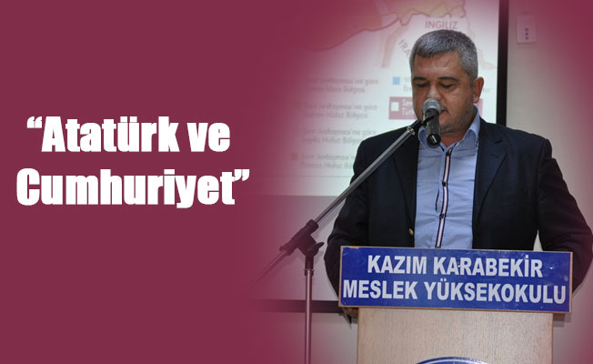 Karamanoğlu Mehmet Bey Üniversitesi (KMÜ) Cumhuriyetin İlanının 94. yılı münasebetiyle, "Atatürk'ün Cumhuriyet Anlayışı konferans düzenlendi.Öğrencilerin Yoğun ilği gösterdiği konferansda Akademisyen Atilla Zorlu''Cumhuriyet bizim dilimize Arapça'dan gelen bir kelimedir. '' Halk idaresi '' demektir. Cumhuriyet'e gelene kadar ülkemizin ne koşullar altında olduğu anlatıldı. Mondros Antlaşması ve Sevr Antlaşması ile paramparça edilen ülkemizin Cumhuriyet ile nasıl toparlandığı anlatıldı. Nüfusun %80 'i köylerde yaşıyordu. 40bin köy 37.000 okul yok. Okur-yazar oranı %2 337 Doktor 60 Eczacı var. 1 Doktora 30.000 hasta düşüyor. Savaşlarda aydınlarımız ve üniversite öğrencilerimiz şehit oldu. Cumhuriyeti kuran ve onu yaşatmak için bugün bile canlarını feda etmekten çekinmeyen şehitlerimize Allahtan rahmet diliyorum''dedi.Konferans verilen plaket ve alkışlarla son buldu.