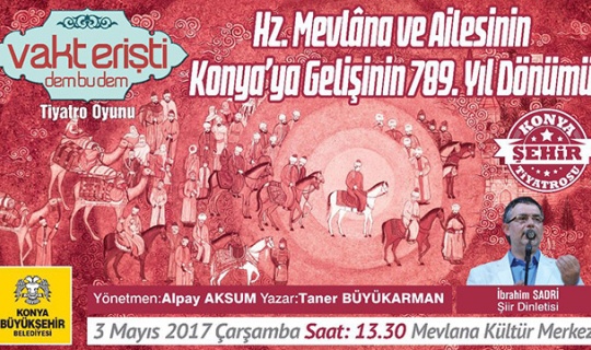 Konya - Konya Büyükşehir Belediyesi, Hz. Mevlâna ve Ailesinin Konya'ya Gelişlerinin 789. Yıl Dönümü nedeniyle “Vakt Erişti Dem Bu Dem” isimli program ile şiir dinletisi düzenliyor.