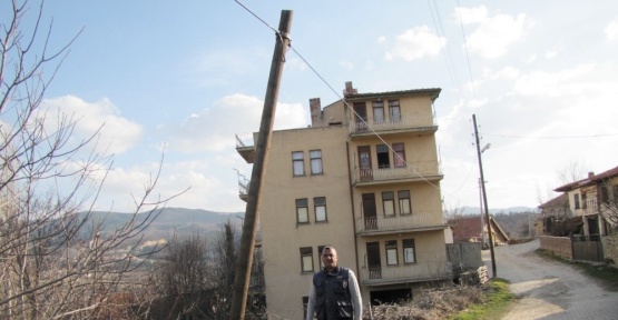 Hisarcık'ta yatık telefon direkleri ve sarkan kablolar tehlike saçıyor