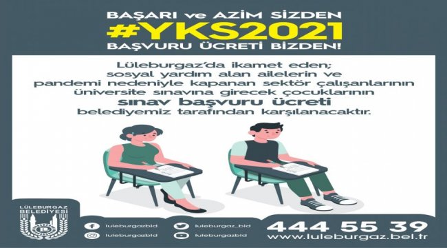 Lüleburgaz Belediyesi Lüleburgaz’da ikamet eden, sosyal yardım alan ailelerin ve pandemi nedeniyle kapanan sektör çalışanlarının üniversite sınavına girecek çocuklarının Yükseköğretim Kurumları Sınavı (YKS) sınav başvuru ücretini karşılama kararı aldı.