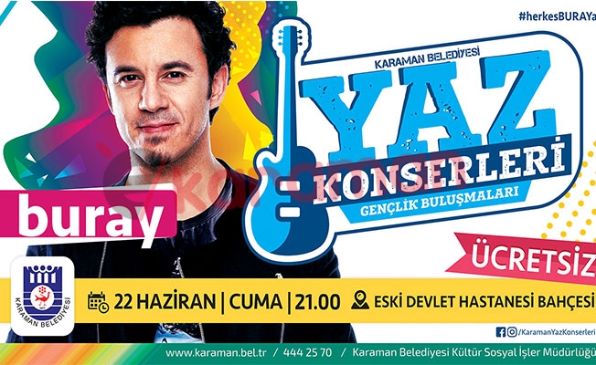 Karaman Belediyesi, kültür sanat etkinliklerine bir yenisini daha ekliyor. Son yılların sevilen ve beğenilen sesi Buray Karaman'a geliyor.Son dönemde hizmete sunduğu birbirinden önemli projelerle vatandaşların büyük takdirini toplayan Karaman Belediyesi, düzenlediği kültür-sanat etkinlikleri ile de dikkat çekiyor. Bu etkinlikler kapsamında sanatçı Buray bu akşam (22 Haziran 2018 Cuma) saat 21.00'da eski devlet hastanesi bahçesinde düzenlenecek olan konserde Karamanlılarla buluşacak. Konu ile ilgili konuşan Belediye Başkanı Ertuğrul Çalışkan; “Bu akşam düzenleyecek olduğumuz yaz konserinde sanatçı Buray'ı hemşehrilerimizle buluşturuyoruz. Ücretsiz olan bu konsere tüm Karamanlıları davet ediyorum.”