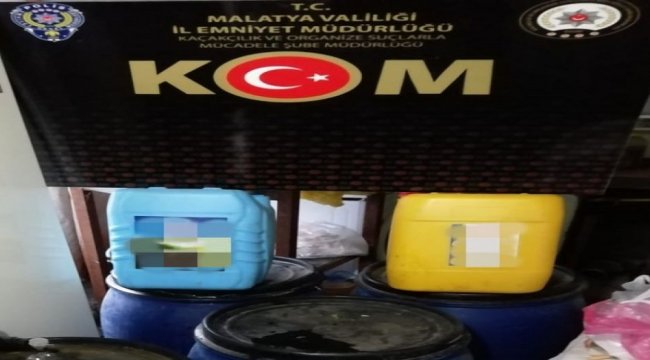 Malatya İl Emniyet Müdürlüğü bünyesindeki KOM Şube Müdürlüğü'ne sahte rakı ve şarap üretimi ile ilgili ihbar geldi. Emniyet tarafından yapılan çalışmalarda tespit edilen şahsın ikametine operasyon düzenlendi. Yapılan aramada, 330 litre el yapımı şarap ile 70 litre boğma rakı ele geçirildi. Şahısla ilgili "5607 SKM" suçundan yasal işlem yapıldı.