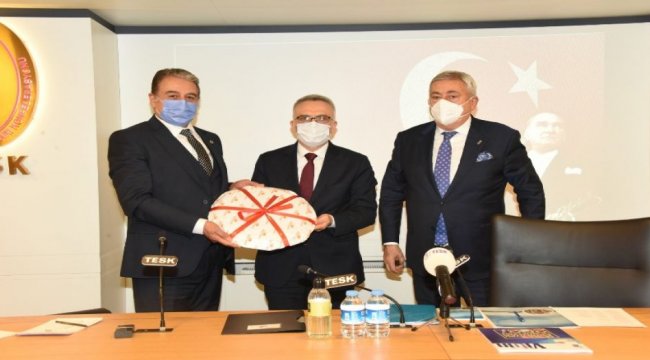 Merkez Bankası Başkanı Naci Ağbal ile yapılan görüşmede TESK Genel Başkanı Bendevi Palandöken tarafından fiyat istikrarının sağlanması konusunda esnaf ve sanatkarlar camiasının talepleri aktarıldığını vurgulayan Şevket Keskin, "Ziyarette pandemi sürecinde yaşanılan sıkıntılar nedeniyle esnaf ve sanatkarın Ziraat Bankası ve Vakıfbank’a olan ticari kredilerinin faizsiz ertelenmesi talebimiz de Merkez Bankası Başkanı Naci Ağbal’a aktarıldı” dedi.Başkan Şevket Keskin, Naci Ağbal’a Malatya Kayısısı hediye etti.