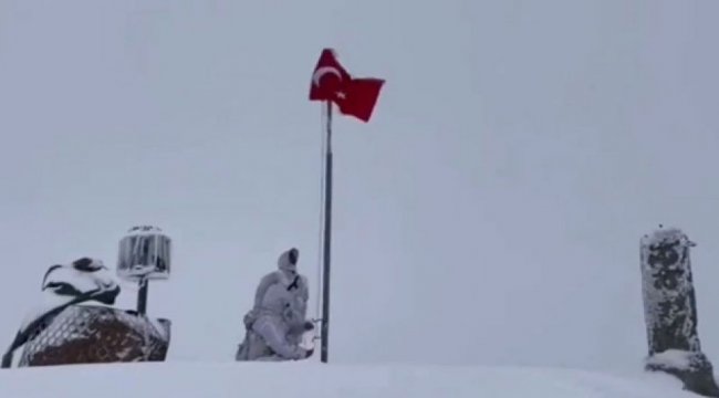 Mili Savunma Bakanlığı, Hakkari'de karla kaplı üs bölgesinde Mehmetçik'in bayrak değişiminin videosunu paylaştı.