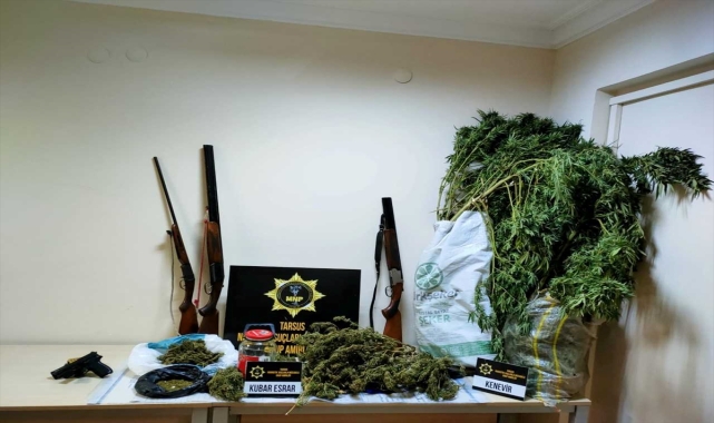 Mersin'in Tarsus ilçesinde, çeşitli suçlara karıştıkları iddiasıyla geçen ay gözaltına alınan 95 şüpheliden 59'u tutuklandı.İl Emniyet Müdürlüğünden yapılan açıklamaya göre, eylülde ilçe genelinde denetim ve operasyonlar gerçekleştirdi.Asayiş uygulamalarında çeşitli suçlardan aranan 95 şüpheli yakalandı. Emniyetteki işlemlerinin ardından adliyeye sevk edilen zanlılardan 59'u tutuklandı.Operasyonlarda 25 tabanca, 6 kurusıkı tabanca, 20 av tüfeği, 6 çalıntı motosiklet, 175 gram sentetik uyuşturucu, 1384 uyuşturucu hap, 1 kilo 100 gram esrar, 179 bin 840'ı doldurulmuş 1 milyon 69 bin 440 makaron (filtreli sigara kağıdı), gümrük kaçağı 14 telefon, 1332 sigara ve 51 kilogram nargile tütünü ele geçirildi.Ekipler, trafik kontrollerinde de çeşitli eksiklikleri bulunan 182 aracı trafikten men etti.