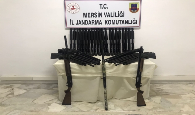Mersin'in Mut ilçesinde 36 ruhsatsız av tüfeği ele geçirilen otomobildeki 2 şüpheli gözaltına alındı.İl Jandarma Komutanlığının açıklamasına göre, kaçak avcılık için üretilen seri numarasız av tüfekleri taşıdığı belirlenen araç takibe alındı.Mut ilçesinde durdurulan otomobilde, 36 ruhsatsız av tüfeği bulundu.Jandarma ekipleri araçtaki 2 zanlıyı gözaltına aldı.