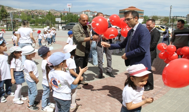 Beypazarı ilçesinde anaokulu öğrencileri 23 Nisan Ulusal Egemenlik ve Çocuk Bayramı kutlamaları kapsamında bayrak yürüyüşü yaptı.Halide Edip Adıvar Anaokulu öğrencileri ellerinde Türk bayraklarla Kaymakamlık binasına kadar yürüdü.Kaymakam Vedat Yılmaz ve İlçe Milli Eğitim Müdürü Adem Uslu tarafından karşılanan öğrenciler, burada Kaymakam Vedat Yılmaz'a günün anısına bayrak hediye etti.Bayrağı öperek alan Yılmaz, çocukların 23 Nisan Ulusal Egemenlik ve Çocuk Bayramı'nı kutladı ve çocuklara üzerinde ay yıldız bulunan kırmızı balonlar hediye etti.Kaymakamlık önünde çocuklar çeşitli gösteriler sunarak oyunlar oynadı, oyunlara Kaymakam ve İlçe Milli Eğitim Müdürü de eşlik etti.