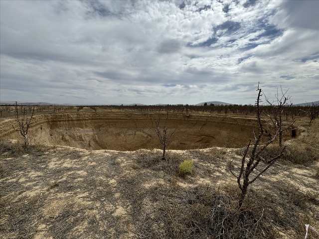 Akçaşehir Belde Belediye Başkanı Soner Yeşildaş, gazetecilere, belde merkezine 2 kilometre mesafedeki elma bahçesinde oluşan obruğun gün geçtikçe genişlediğini, bahçedeki ağaçların kuruduğunu söyledi.