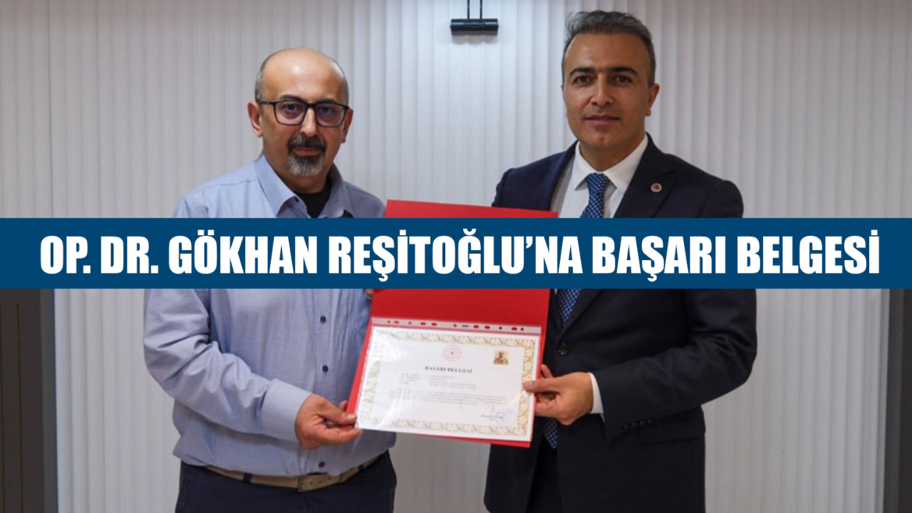 OP. DR. GÖKHAN REŞİTOĞLU'NA BAŞARI BELGESİ