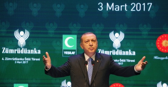 Cumhurbaşkanı Recep Tayyip Erdoğan, Almanya’daki etkinliklerin iptal edilmesiyle ilgili, "Teröre yardım ve yataklık yapmaktan bunların yargılanması gerekir. Olay bu kadar açık ortadadır" dedi.Yeşilay tarafından "Bağımlılıklardan uzak, sağlıklı yaşamı" misyon edinen, söz ve eylemleriyle bu mücadeleye destek veren kişi, kurum ve kuruluşlara verilen “Zümrüdüanka Ödülleri" için Cemal Reşit Rey Konser Salonu’nda tören düzenlendi.Yeşilay Genel Başkanı Prof. Dr. Mücahit Öztürk’ün ev sahipliğinde bu yıl dördüncüsü düzenlenen ödül törenine Cumhurbaşkanı Recep Tayyip Erdoğan, eşi Emine Erdoğan, Enerji ve Tabii Kaynaklar Bakanı Berat Albayrak, İstanbul Valisi Vasip Şahin, AK Parti İstanbul İl Başkanı Selim Temurci ve çok sayıda davetli katıldı.Törende yaptığı konuşmada Yeşilay’ın önemine değinen Cumhurbaşkanı Recep Tayyip Erdoğan, “Savaşlar sadece cephede olmaz, asıl savaş manevi ve toplumsal alanda verilendir. Zira milleti çözen, devleti çökerten asıl saha burasıdır. Maneviyat alanıdır, medeniyet alanıdır, kültür alanıdır. Bu değerleri kaybederseniz, çökersiniz. Uğruna mücadele edecek kutsalı kalmayan bir milleti bir kez değil her zaman mağlup edersiniz. Bunun için işgal güçleri 1920 yılında İstanbul limanına demirledikleri gemilerden gençlerimize bedava alkollü içki dağıtıyorlardı. Kendileri bir gün çekilip gitse de en kalıcı zararın manevi tahribat olduğunu biliyorlardı. O gün bedava içki üzerinden kimliksiz hale getirilen gençlik şimdi ideolojiler üzerinden kişiliksiz hale getiriliyor. Gezi olaylarında olduğu gibi gençlerimize bedava alkol dağıtmaktan geri durmuyorlar. Senaryo aynı senaryo. Sadece kendi çıkarını düşünen bir nesil için ellerindeki tüm araçları kullanıyorlar. Bu sorun sadece ülkemize ait değil. Küresel düzeyde uyuşturucu kültürü özendirilerek farklı düzenlemelerle meşrulaştırılarak toplumu ayakta tutan sütunlar dinamitleniyor. Türkiye güçlü aile yapısı sayesinde hamdolsun bu dalganın etkisini azaltabiliyor. Ama giderek büyüyen tehdit haline geldiğinin farkındayız. Bununla birlikte mücadeleyi yürütmemiz gerektiğine inanıyorum" dedi."Eyyamcı değil milli ve yerli gençlik için herkesin gayret göstermesi şarttır"Geleceğimizin teminatı olan gençlere yönelik hizmetleri çok değerli bulduğunu aktaran Cumhurbaşkanı Erdoğan, “Onların ilgisini çekecek çalışmaların sayısını artırmalıyız. Çok daha fazla insana ulaşmamız, onların derdine derman olmamız gerekiyor. Eyyamcı değil milli ve yerli gençlik için herkesin gayret göstermesi şarttır. Sigara, puro şu bu vesaire aklınıza sadece gelmesin. Zihinleri bundan kurtaramazsak geleceğimiz elden gider” diye konuştu."Toplumu kutuplaştırmanın peşine düştüler""Türkiye’deki belli kesimler sürekli sorunu başka taraflara çekmeye gayret ettiğine vurgu yapan Cumhurbaşkanı Erdoğan, “Alkol düzenlemesi gibi son derece masum bir meselede iftiralarla yalanlarla ortalığı ayağa kaldırıyorlar. Hiç alakası olmadığı halde konuyu hayat tarzı tartışmalarına çekerek kendilerince yeni cepheler açmak istediler. Yaşam biçimimize müdahale ediliyor diye haftalarca gündemi meşgul ettiler. Hangi alkol satan yeri yasalara uygun olduğu halde kapattık? Böyle bir şey var mı? Biz sadece burada tebliğ görevimizi yaptık. Bu tartışma üzerinden toplumu kutuplaştırmanın peşine düştüler. Milletimiz sağduyusuyla bu kesimlerin ucuz politikalarına prim vermedi. Alkol düzenlemesi yürürlüğe gireli Haziran yılında 4 sene olacak. Muhalefetin hiçbir iddiası doğru çıkmadı. Bunlar çamur at, tutmasa da izi kalır mantığı ile hareket ediyorlar. O çamurlar kendi paçalarına, kendi suratlarına yapışmıştır. Sadece bu hadisenin dahi ülkemizdeki muhalefetin seviyesini göstermesi açısından ibretlik” şeklinde konuştu.“Cumhurbaşkanlığı sistemine neden karşı çıktıklarını açıklayamadıkları için eski usullere başvuruyorlar”“Cumhurbaşkanlığı sistemine neden karşı çıktıklarını açıklayamadıkları için eski usullere başvuruyorlar” diyen Cumhurbaşkanı Erdoğan sözlerini şöyle sürdürdü:“Yönetim sistemi değişikliğini rejim değişikliği olarak göstermeye çalışıyorlar. Yahu ne alakası var? İlk kez karşısında ben olurum. Bugünün işi değil 200 yıllık iştir. Biz yönetim sistemini değiştirmek suretiyle geleceğe farklı bir adım atıyoruz. Parlamentoda sürekli patinaj yapan bir sistemi değiştirmek suretiyle adeta uçmamız lazım. Bunun önünü açmamız lazım. Biz damdan düştük. Fakat bunu engellemek isteyenlerin bu ülkede sorumluluk diye bir şeyi olmadı. Olacağı da yok. Dikili ağaçları yok bu ülkede. Biz bu millete, ülkeye aşığız. Biz dertliyiz. Muasır medeniyetler seviyesine lafla çıkılmaz, icraatla çıkılır. Bu ülkeyi terörizme ve teröristlere teslim etmeyeceğiz bundan hiç endişeniz olmasın. Devletin rejimi olan cumhuriyet konusunda geri adım yoktur. Yürütmeyi doğrudan milletin emrine veriyoruz. Milletin vekalet verdiği kişiler parlamentoda akıllarına estikçe gensoru veriyor. Biliyor ki geçmez. Ama yine de veriyor. Dert hükümeti çalıştırmamak. Şimdi aslolan millet. Dolayısıyla 5 yılda bir millete gelecek. Millet memnunsa devam diyecek. Aslolan budur. En geniş manada oylama bu. Yargının bağımsızlığının yanına biz tarafsızlığını getirdik. Hem bağımsız hem tarafsız olacak. Kim, niçin karşı çıkar bunu da bilmiyorum. Çocuklara mı bırakacağız parlamentoyu diyorlar. Kendi gençliğine güvenmeyen zihniyet. Ama o gençleri 14 yaşındaki genci Kandil’e götürürken ona güveniyorsun? Diyarbakır Belediyesi’nin önünde günlerce ağlayan annelerin ahı hepsini tutacaktır. Seçmek mi zordur, seçilmek mi? Aslolan seçmek zo