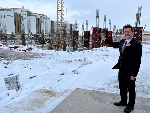 Karaman Milletvekili Osman Sağlam, yapımı devam eden Karaman Eğitim ve Araştırma Hastanesi ek bina inşaatını ziyaret etti. İnşaat sahasında incelemelerde bulunan Sağlam, projeye ilişkin bilgi aldı.Ziyaret sonrasında açıklama yapan Sağlam, "Karaman'da yapımı devam eden Eğitim ve Araştırma Hastanemizin ek bina inşaatını ziyaret ettik. İnşaatın hızla yükseldiğini görüp sevindirici. Şantiyede ustalarımızla bir araya gelerek çalışmalar hakkında bilgi aldık. Sağlık hizmetlerini güçlendirecek bu projeyi takip etmeye devam ediyoruz, "dedi.Hastanenin ek binası tamamlandığında, bölgedeki sağlık tesisleri daha modern ve etkin bir şekilde hedefleniyor. Projenin, sağlıkta önemli katkılar sağlaması bekleniyor.