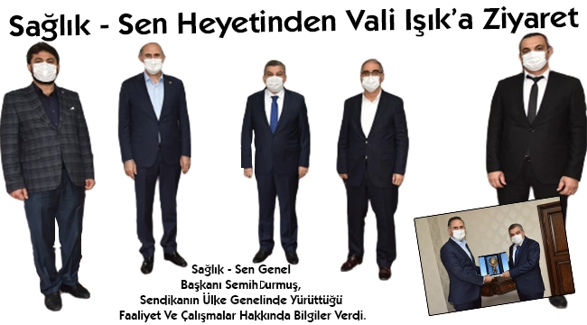 17 Kasım 2020 Salı günü Valilik Makamında gerçekleşen ziyarette kabullerinden dolayı Vali Mehmet Alpaslan Işık’a teşekkür eden Sağlık - Sen Genel Başkanı Semih Durmuş, sendikanın ülke genelinde yürüttüğü faaliyet ve çalışmalar hakkında bilgiler verdi.