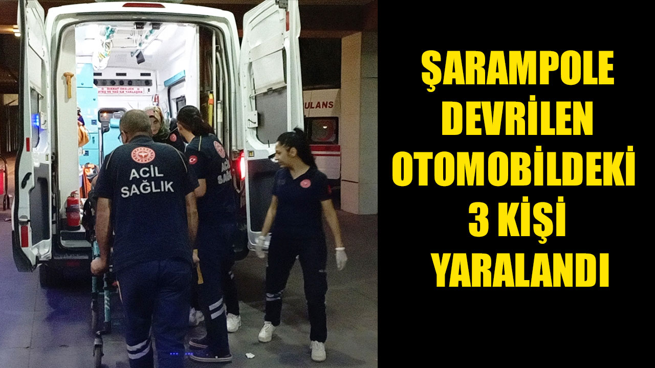 ŞARAMPOLE DEVRİLEN OTOMOBİLDEKİ 3 KİŞİ YARALANDI