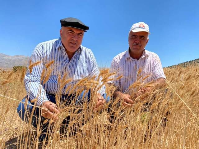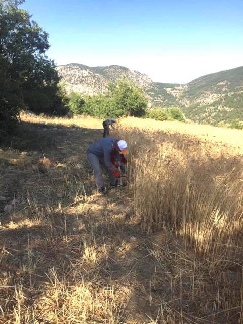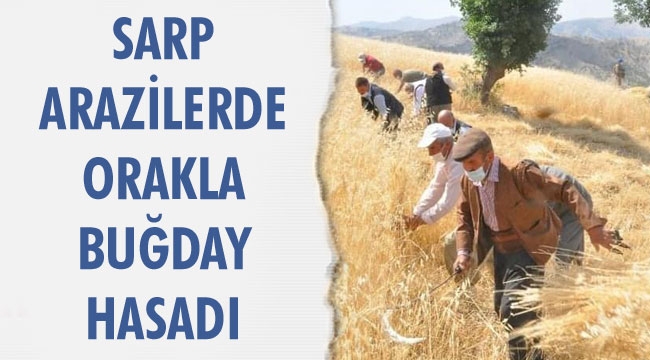 SARP ARAZİLERDE ORAKLA BUĞDAY HASADI