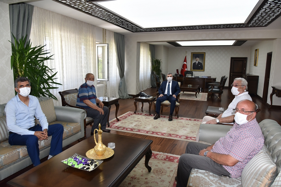 Karaman Şehit Aileleri Derneği Başkanı Mustafa Bayat ve beraberindeki heyet Vali Mehmet Alpaslan Işık’a hayırlı olsun ziyaretinde bulundu.