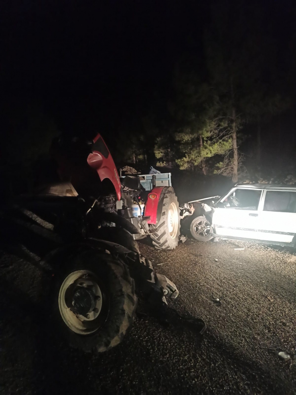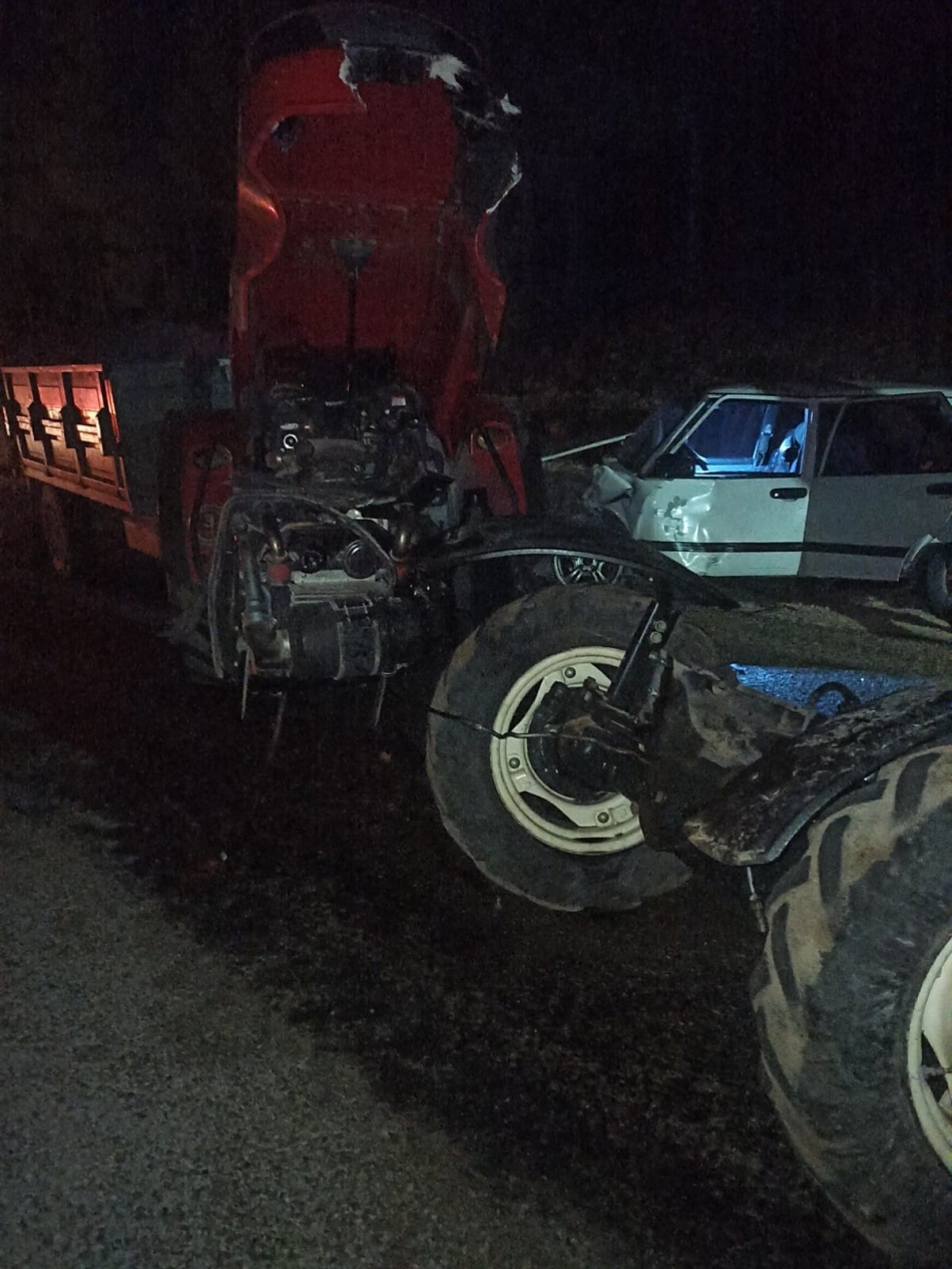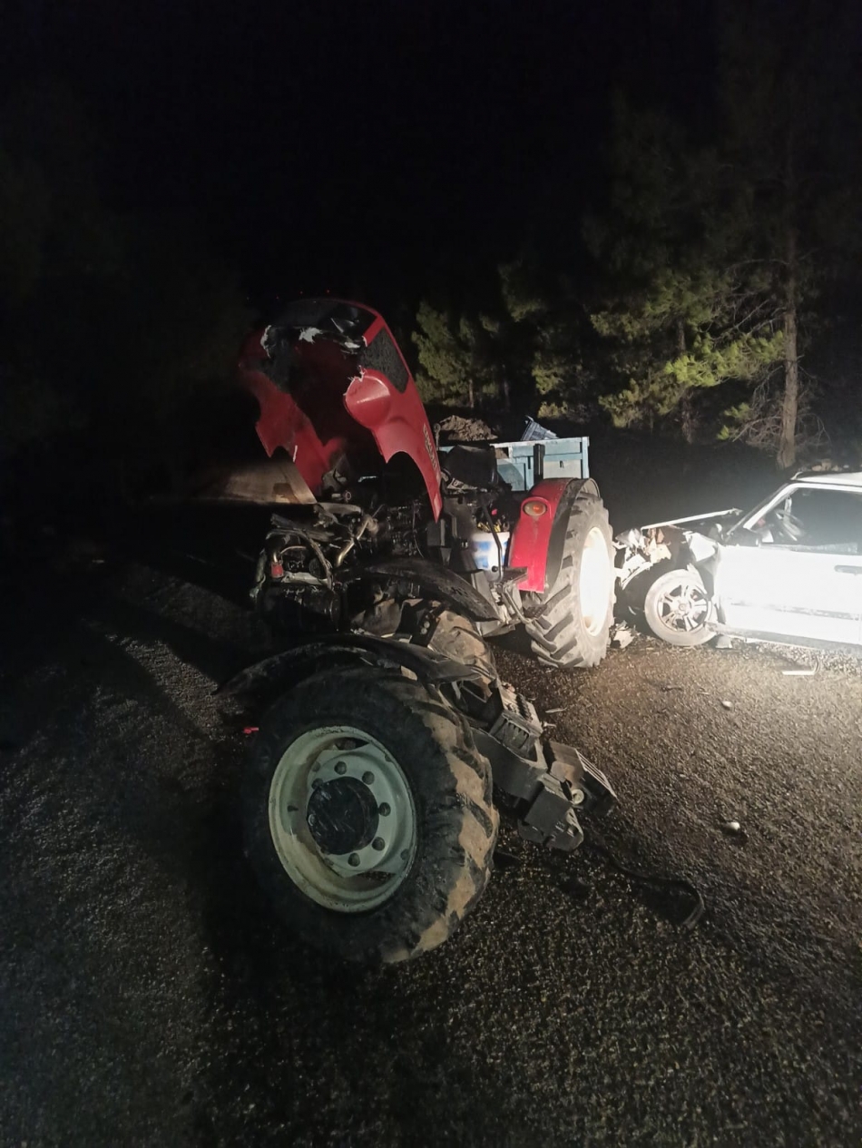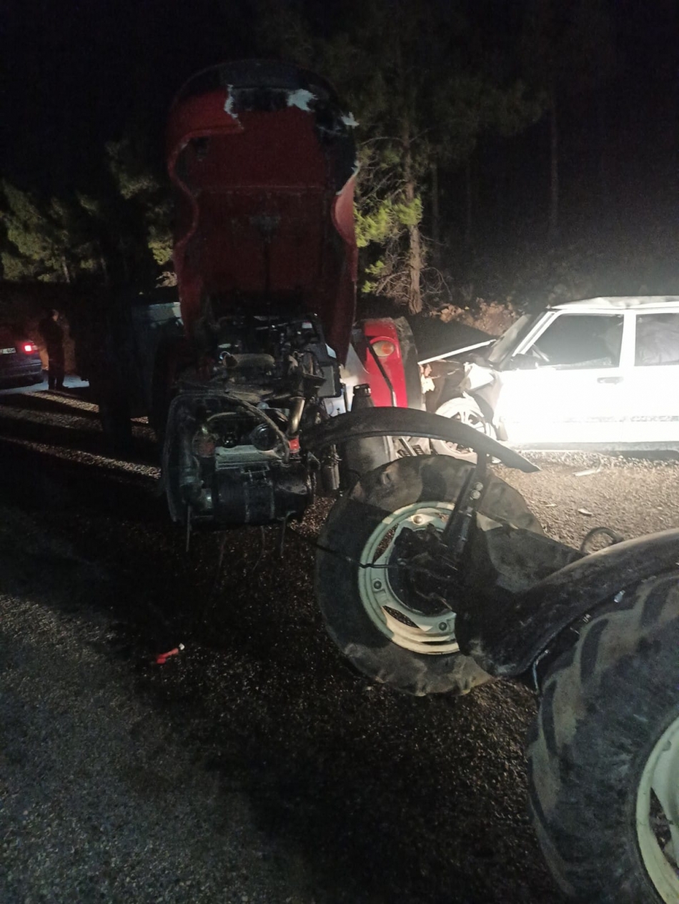İddiaya göre viraja kontrolsüz giren traktör ve otomobil sürücüsü kafa kafaya çarpıştı.