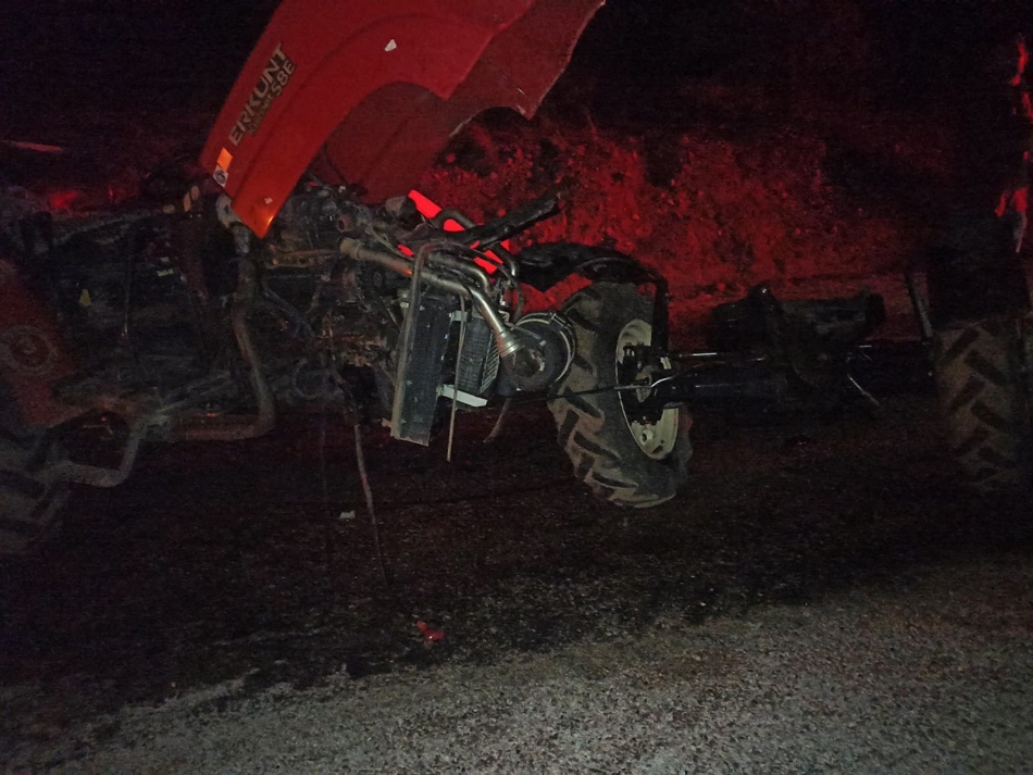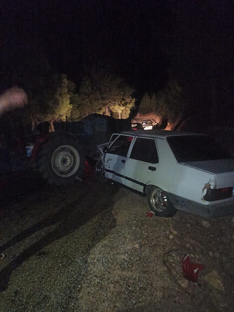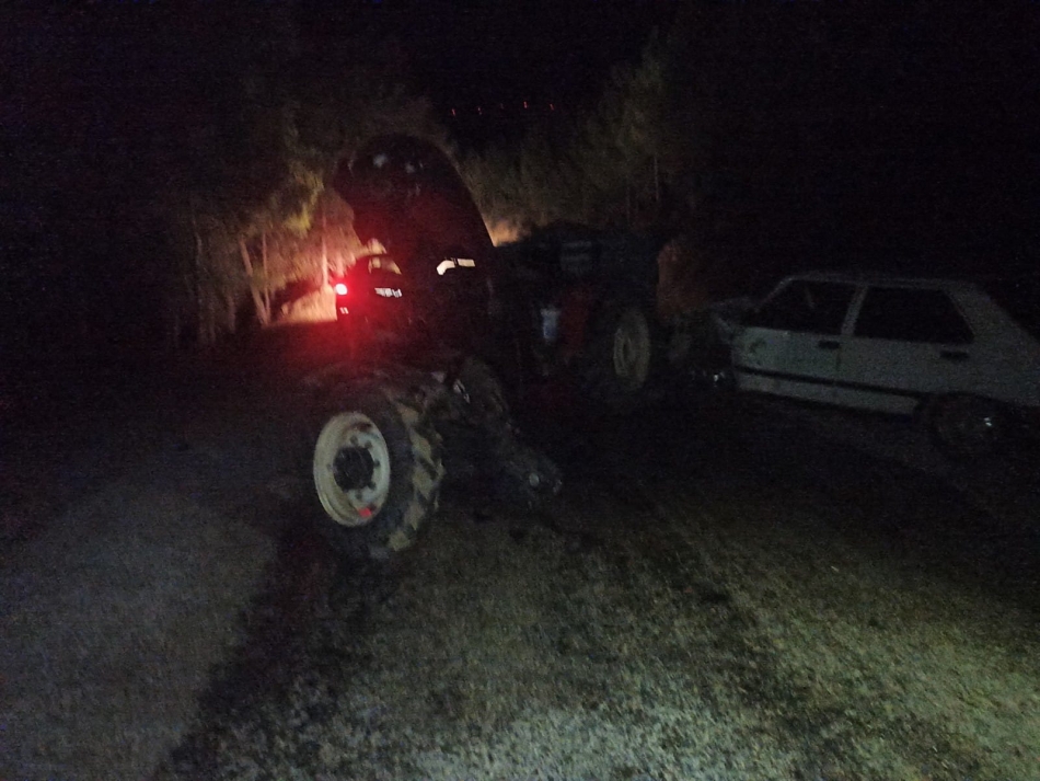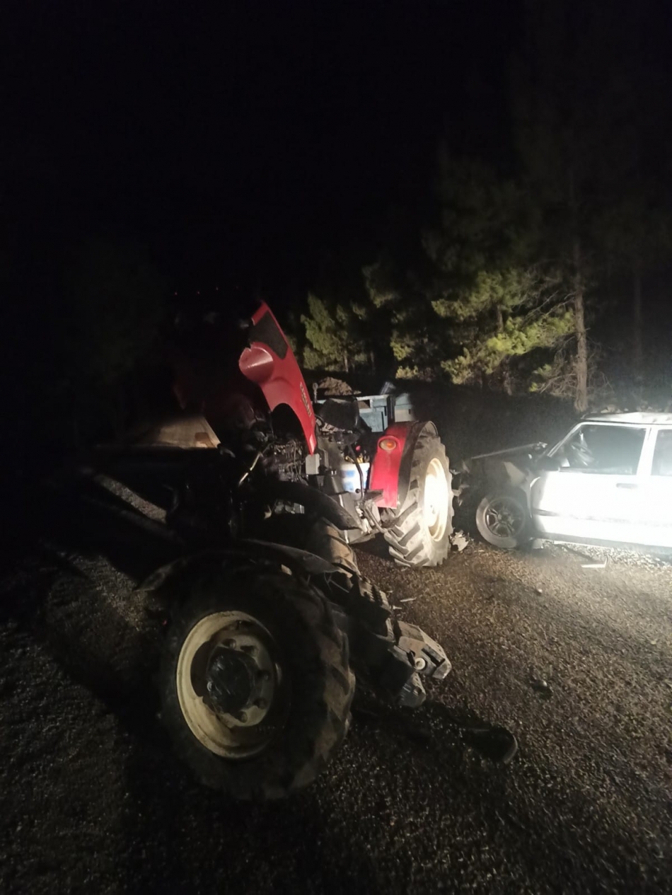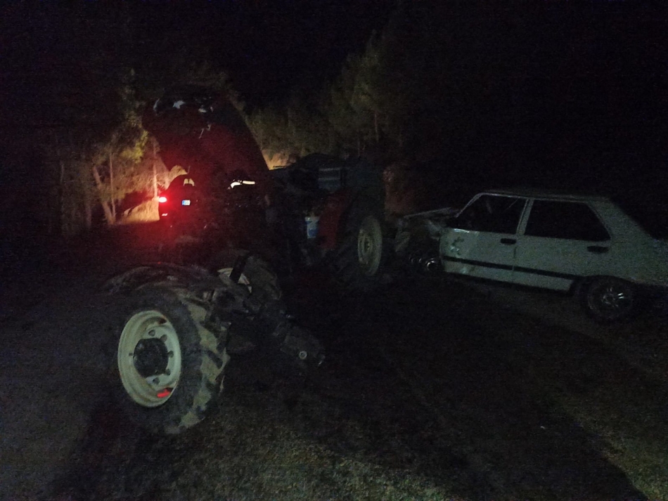 İddiaya göre viraja kontrolsüz giren traktör ve otomobil sürücüsü kafa kafaya çarpıştı.