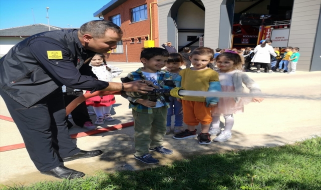 Seydişehir’de anasınıfı öğrencileri, İtfaiye Haftası dolayısıyla Konya Büyükşehir Belediyesi Seydişehir İtfaiye Amirliğini ziyaret etti.İtfaiye personeli, öğrencilere, yangın söndürme ve kaza kırım ekipmanlarını tanıttı.