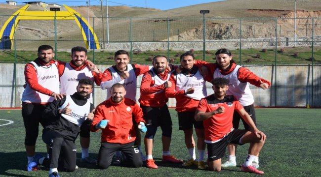 SİİRT (İGFA) - Bursa Yıldırımspor maçının hazırlıklarına devam eden Siirt İl Özel İdaresi Spor Kulübü antrenmanda çift kale maç yaptı.Sarı-Mavili takımın idmanında yapılan çift kale maçında galip gelen beyaz takımda yer alan oyuncular maçtan sonra galibiyet pozu çektirdiler.Siirt İl Özel İdare-Bursa Yıldırım Spor maçı yarın saat 13.00’da Siirt Atatürk Stadyumu'nda oynanacak.