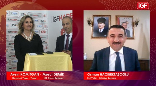 PROGRAMINI İZLEMEK İÇİN TIKLAYINÇİFTÇİLERE DESTEKLER VARSiirt Valisi ve Başkan Vekili Osman Hacıbektaşoğlu da, kendi şehrindeki basın mensuplarının üye olduğu Siirt Gazeteciler Cemiyeti’nin de içinde bulunduğu İGF’ye başarılar diledi. Siirt’in farklı medeniyetlere ev sahipliği yaptığını aktaran Hacıbektaşoğlu, “Eğitim ve kültür kentiyiz. Tarım ve hayvancılık ile sanayi alanında da önemli yatırımlar var. Madenköy’de büyük bir maden işletmesi var. Şirvan ilçemizden de iş gücü sağlanıyor. Çinkomuz da önemli bir değerimiz. Siirt’te kıymetli maden yataklarımız var. Meyvecilik ve fıstıkçılık anlamında da katkılar sağladılar” açıklamasında bulundu. Küçükbaş hayvan yetiştiriciliğiyle ilgili desteklerin de sürdüğünü kaydeden Vali Hacıbektaşoğlu, 150 bin liraya kadar destek sağlandığını vurguladı.KAYYUM ATANMASININ NEDENİ TEK....Vali olarak atandığı Siirt’te kayyum olarak Belediye Başkan Vekilliğini de yürüten Osman Hacıbektaşoğlu, yaşanan süreci anlatırken, “Devletimizin kayyum olarak bizleri atamasının tek bir nedeni var. O da terör örgütüne kaynak aktarılmasıdır. Ayrıca terör örgütlerinin evlatlarımızı dağa kaçırmasının önüne geçilmesi için bu atama yapılmıştır. Şimdi devletin kaynakları kuruşu kuruşuna Siirtlilere aktarılıyor” dedi.PROJELER PEŞİ SIRA GELİYORSiirt’te hayata geçen ve geçecek projeler hakkında da bilgi aktaran Hacıbektaşoğlu, “Yetersiz bir arıtma tesisimiz var ilk olarak bu projeyi Devlet Su İşleri Genel Müdürlüğü marifetiyle bu sene içerisinde bitirmeyi hedefliyoruz. Ayrıca atık su arıtma tesisiyle ilgili de İller Bankası’yla temaslarımız sürüyor. Park ve bahçelerimizi yaşamaktan keyif aldığımız yerlere dönüştürme projemiz var. 15 Temmuz Demokrasi Meydanı projemizi geliştiriyoruz. 20 mahalleye en az 1 spor tesisi taahhüdümüz var. Bunun için de çalışmalara başladık. Güreş Caddesi projesi ihaleye çıkmadan önce vatandaşlarımıza sorulacak farklı alternatifler olacak. O proje de bu yıl içerisinde tamamlanacak. Belediyeye vatandaş ve muhtarlardan gelen her talep kayıt altına alınıp, takip ediliyor. Ne zaman karşılanması gerekiyorsa, o zaman karşılanıyor” ifadelerini kullandı.KENTSEL DÖNÜŞÜMÜ VATANDAŞLARLA YAPACAĞIZSiirt için en önemli projeler arasında yer alan kentsel dönüşüm konusuna dair de açıklamalarda bulunan Vali ve Belediye Başkan Vekili Osman Hacıbektaşoğlu, “Alan, Bakır, Sakarya mahallelerinde, eski Siirt tarafında kentsel dönüşüm çalışmaları başladı. Her anını vatandaşlarımızla paylaşarak projemize şekil vereceğiz” dedi.VAKA SAYILARINDA EN DÜŞÜK İLLER ARASINDAYIZSiirt’in Koronavirüs vaka sayılarının en düşük olduğu iller arasında yer aldığını aktaran Vali Hacıbektaşoğlu, “Aralık ayına göre yüzde 90-95 oranında bir düşüş var. Başta sağlık çalışanlarımız olmak üzere tüm Siirtlilere teşekkür ederim. Normalleşme sürecine biz de başlayacağız. Yüz yüze eğitime köy okullarında başladık. Önümüzdeki süreçte aldığımız tedbirleri gevşetmeyi düşünüyoruz” açıklamasında bulundu.İGF TV'DE "MEMLEKET MESELESİ"