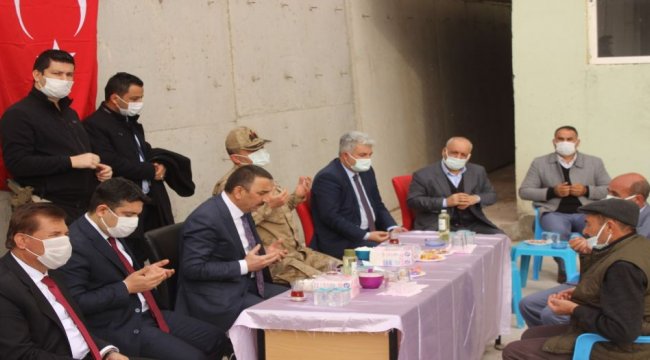 SİİRT (İGFA) - Siirt Valisi Osman Hacıbektaşoğlu, Ulaştı köyünde vatandaşlarla bir araya geldi. Vali Hacıbektaşoğlu, 1986 yılında bölücü terör örgütü tarafından yapılan hain saldırıda gelini ve üç torunu şehit edilen ve köyde uzun yıllar muhtarlık yapan bir süre önce vefat eden merhum Resul Hazar’ın ailesini ziyaret ederek, başsağlığı diledi. Hazar ailesi ise adına Cemal Hazar ise, ziyaretten duydukları memnuniyeti dile getirdi.