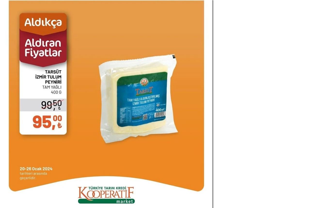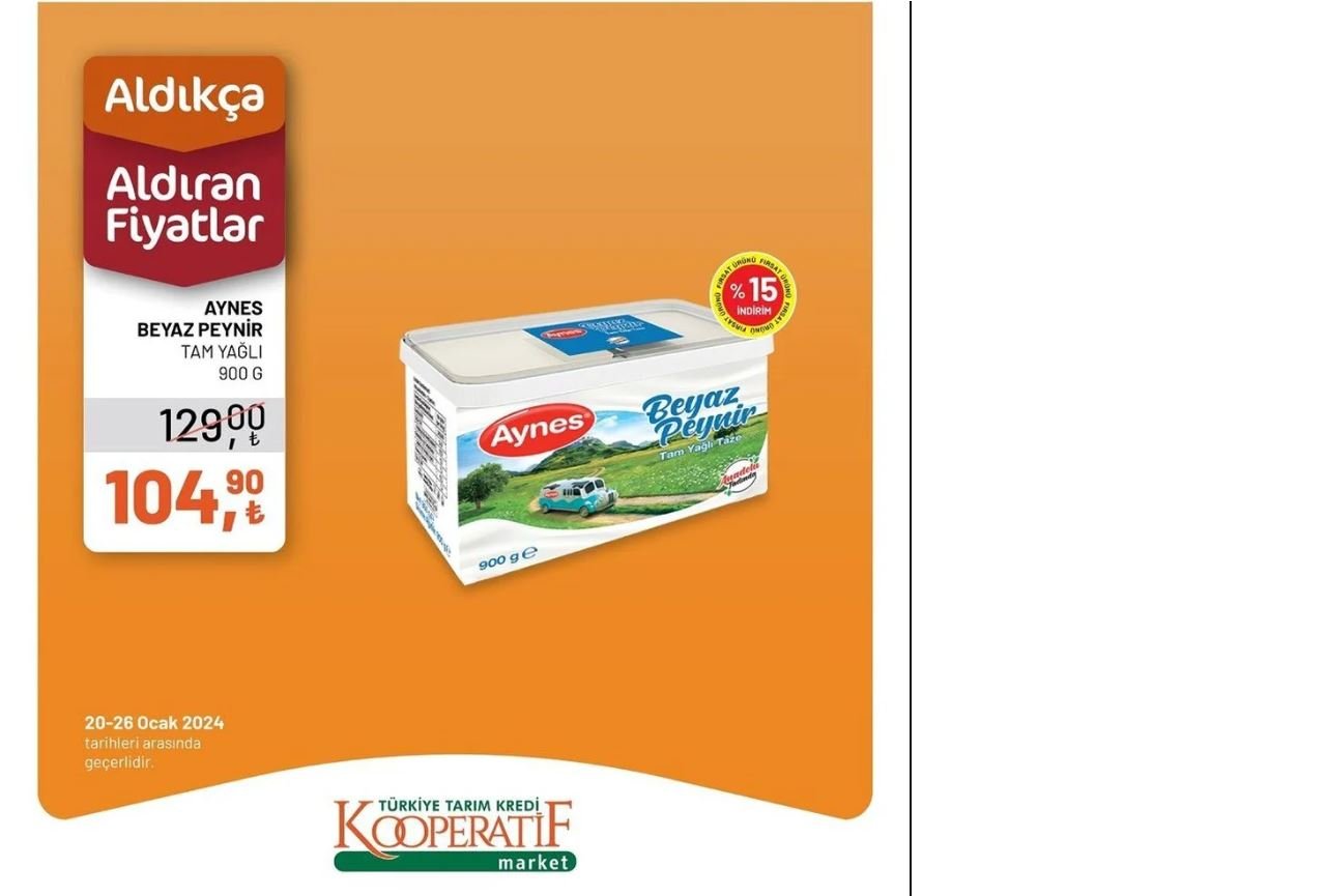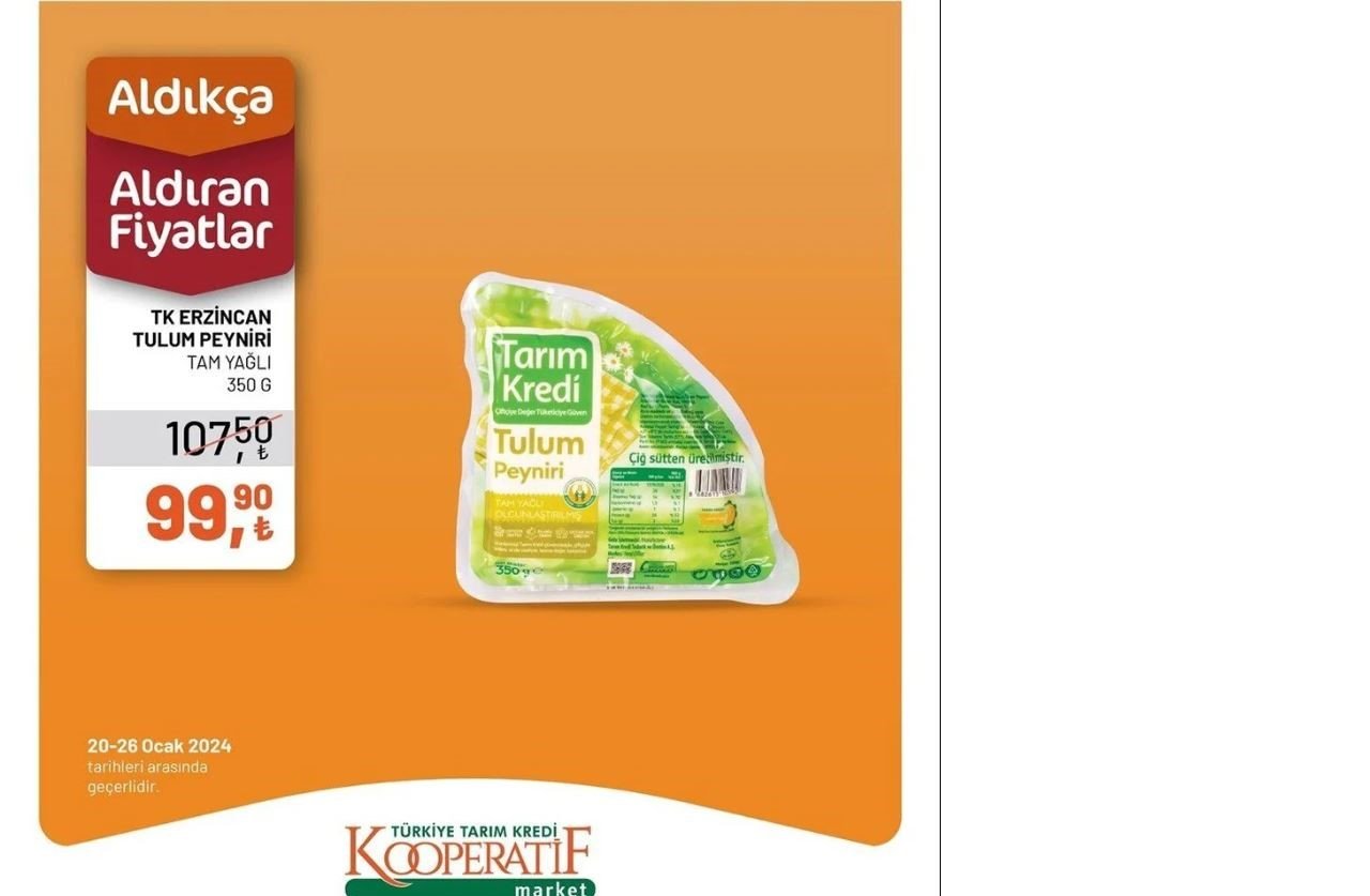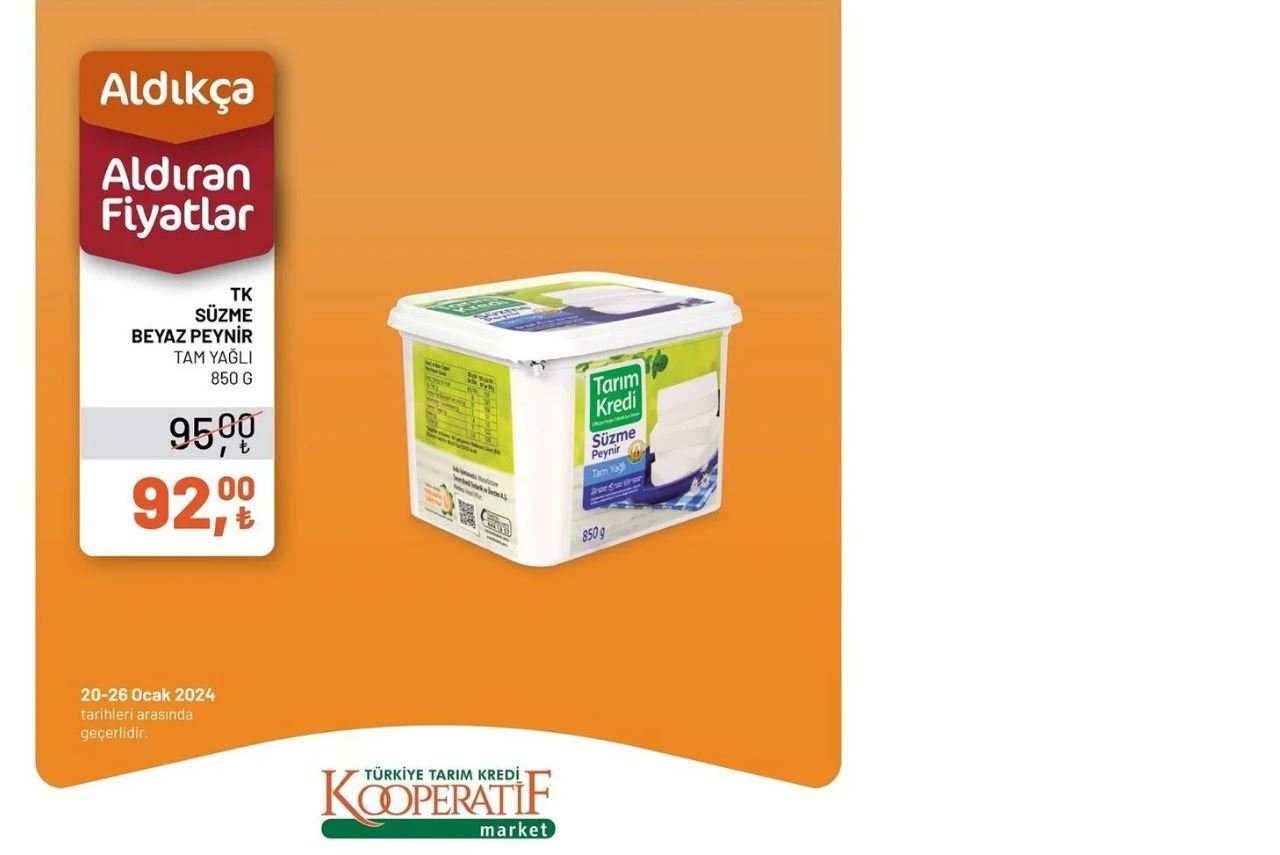 Özellikle yerli ürünler olan talepler artıyor bu dönemde, Tarım Kredi Kooperatifleri'nin kendi ürettiği ürünlerde büyük ilgi görülüyor. 20-26 Ocak tarihleri arasında geçerli olacak indirimler arasında peynir ürünlerine yapılan özel indirim dikkat çekiyor.Son günlerde fiyatı en çok artan ürünler arasında yer alan peynir, bu hafta Tarım Kredi Marketlerinde özel bir indirimle satışa sunuluyor. Yerli talebin artmasıyla birlikte, Tarım Kredi Kooperatifleri'nin kaliteli peynirleri uygun özelliklerde sunuldu.Tarım Kredi Market, 20 Ocak'tan itibaren geçerli olacak indirim kampanyasını sosyal medya hesapları üzerinden duyurdu. Yapılan paylaşımda, "Tarım Kredi Kooperatif Market'te bulunan ürünlerde fiyatlardan aldıkça var! İndirimlerimizden faydalanmak için 20-26 Ocak tarihlerinde mağazalarımızda bekliyoruz" indirimlerinden ayrıldı.Vatandaşlar, uygun fiyatlı kaliteli peynir ürünlerine sahip olmak için Tarım Kredi Marketleri'ne akın etmeye başladı. Peynirde kampanya yapılabilmesi ve diğer ürünlerde uygulanan indirimlerle kişiye ekonomik alışveriş imkanı sunuldu.