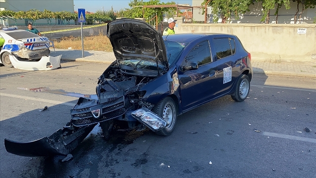Fatih Kara yönetimindeki trafik polis aracı, Larende Mahallesi Kılbasan yolunda İsmail Bozkır idaresindeki yabancı plakalı otomobille çarpıştı.
