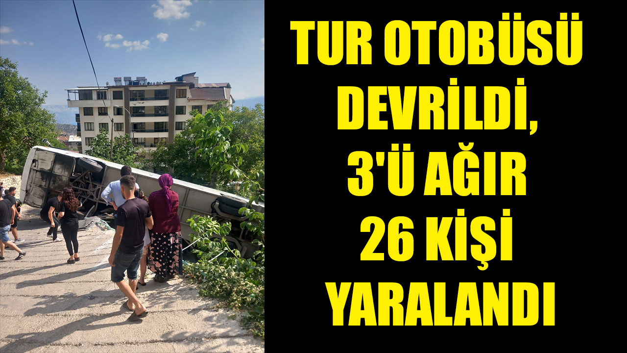 TUR OTOBÜSÜ DEVRİLDİ, 3'Ü AĞIR 26 KİŞİ YARALANDI