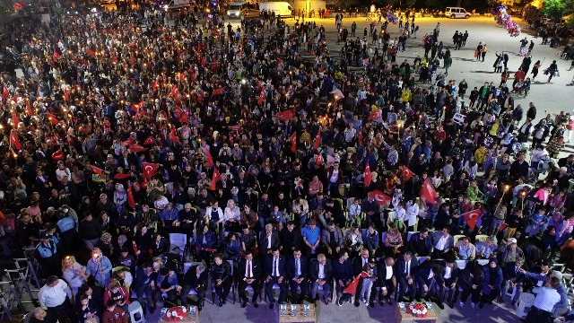 745. Türk Dil Bayramı ve Yunus Emre’yi anma etkinlikleri coşkuyla kutlanmaya devam ediyor. Etkinlikler çerçevesinde bu akşam,Türkçe Aşkı Vatan Aşkı Yürüyüşü düzenlendi. Aktekke 15 Temmuz Demokrasi Meydanı’nda toplanan binlerce vatandaş; 1. İstasyon Caddesi üzerinden Kazım Karabekir Paşa Caddesi, Molla Fenari Caddesi ve İsmetpaşa Caddesi istikametinden bando ve fener alayı eşliğinde tekrar kent meydanına geldi.