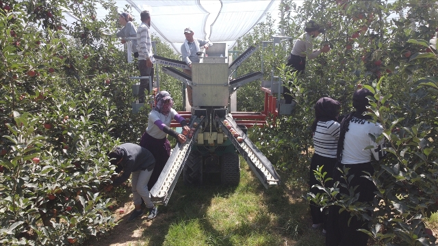 Elma bahçesinin bölge ekonomisine de büyük katkı sağladığını vurgulayan Yeniel, bahçede çalışan 150 traktörün çevre mahallelerden kiralandığını dile getirdi.
