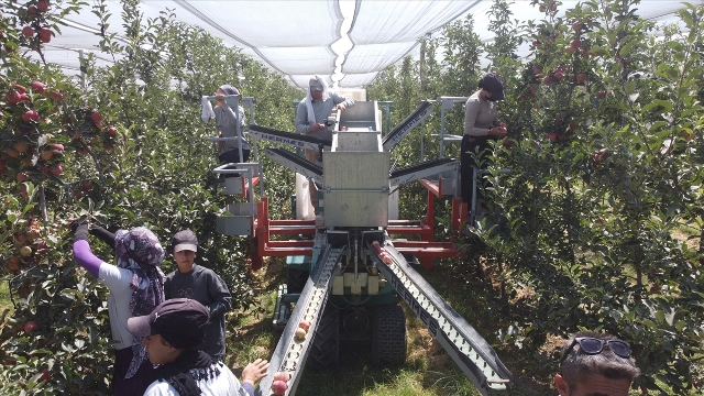 Yeniel, 1 milyon 750 bin elma ağacının bulunduğu bahçenin tamamının telli terbiye sistemiyle kapatıldığını belirterek, "Şu anda erkenci çeşit gala elmasının hasadı başladı. 800 kişiyle hasat yapıyoruz. Bu yıl 25 bin ton rekolte bekliyoruz. Eylülün ortasına kadar gala hasadı devam edecek. Sonra işçi sayısı 1200 civarında olur." diye konuştu.