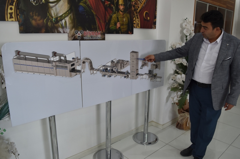 Bizler yeni bir ürün yaparken müşterimizin elinde gofret olsun çikolata olsun şeker olsun bir tane ürünle geliyor. Mesela bu croken hattından bahsedersek bu croken hattı 4 gramlık bir sert şeker olarak geçiyor. Ve bunun Türkiye’de bir imalatı yok. Bunun hattı Almanlarda var. Bu hattı yapabilirmişiz diyerek getirdiler bize. Biz de bunun üzerinden birkaç ay çalışarak bu hattı yapabileceğimize başarabileceğimize inandık. Bunun üzerinde çizimlerimizi geliştirdik. Projelerimizi hazırladık. Ve bu ürünü yapmaya karar verdik. Ve bu ürünü 6 ayda bitirdik. Ve fabrikada kurduk. Ve Türkiye’de bu hattı da ilk ve tek biz yapıyoruz şu anda. Şimdi o hattı tasarladık. Üretimini yaptık. Ve burada da denemelerini de yaptık. Ve bu hattı Kazakistan’a giderek kurduk ve çalışmamalarımız başarıyla sonuçlandı.