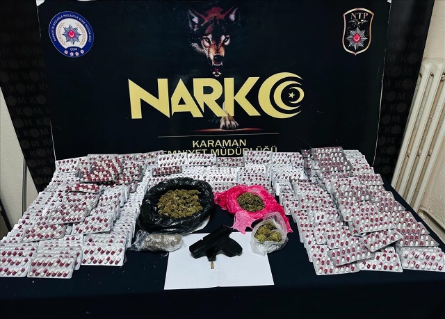Ekiplerin düzenlediği operasyonda 5 bin 138 uyuşturucu hap, 381,3 gram skunk, 4 kök kenevir bitkisi, 1 hassas terazi ve 1 ruhsatsız tabanca ele geçirildi.