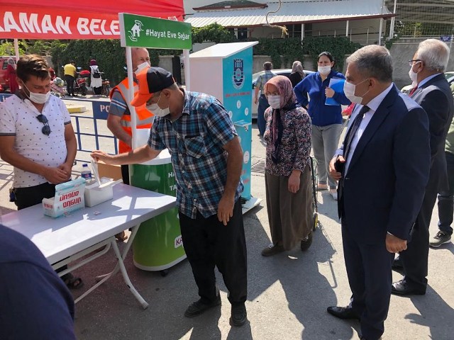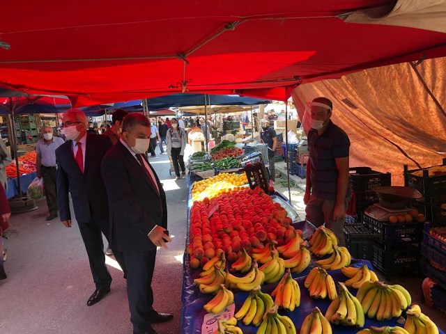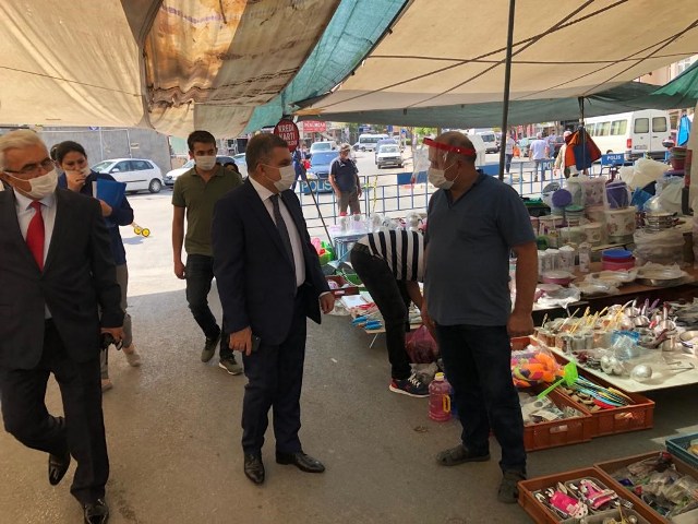 Pazar esnafı ve vatandaşlardan özellikle maske kullanımı, fiziki mesafenin korunması ve temizlik kurallarına uymaları konusunda tavsiyelerde bulunan Vali Işık, “Yaşanan bu zorlu sürecin atlatılabilmesinin belirlenen kurallara uyulması ile mümkün olabileceğini belirterek koronavirüsü hep birlikte yeneceğiz” dedi.