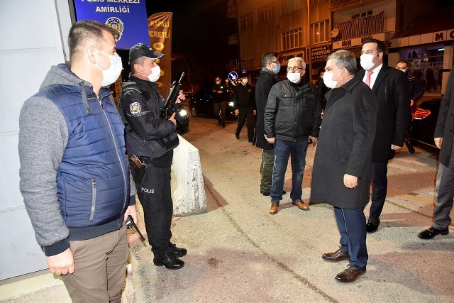 Yılbaşı gecesi halkın güvenliği ve huzurlu bir yılbaşı geçirmelerine yönelik yapılan denetimlerde Vali Işık, ziyaret ederek incelemelerde bulunduğu polis ve jandarma karakolları ile trafik uygulama noktalarında görev yapan emniyet ve jandarma ekiplerinin yeni yılını tebrik ederek görevlerinde kolaylıklar diledi. Covid-19 koronavirüs salgını nedeniyle ilimiz ve ülkemizin zorlu bir süreçten geçtiğini ifade eden Vali Işık, bu sürecin atlatılabilmesi ve halk sağlığının korunması amacıyla gece gündüz demeden özverili ve fedakârca çalışan polis ve jandarma ekiplerine teşekkür etti.