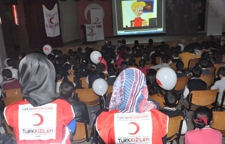 Kızılay Van Şube Başkanlığı tarafından bin öğrenciye deprem ve sel felaketini anlatan “Aykız ve Aycanın Maceraları” isimli kitap dağıtılarak; ilk yardım ve kan bağışının önemini anlatan çizgi film ve animasyon gösterileri izletildi.