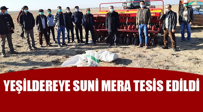 3 Aralık 2020 Perşembe günü İl Tarım ve Orman Müdürü Yusuf ŞAHİNBAŞ, Yeşildere köy muhtarı Lütfi BULUT ve üreticilerimizin katılımı ile doğrudan ekim mibzeri ile ekim yapılmak suretiyle suni mera tesis edildi. Ekim programında İl Müdürü Yusuf ŞAHİNBAŞ yaptığı konuşmasında: “Meralarımızı Islah edip hayvancılığımızın hizmetine sunuyoruz. Bugün Yeşildere köyümüzün meralarına taban gübresi ile birlikte, korunga, çayır düğmesi, yonca ve kılçıksız brom tohumlarını doğrudan ekim mibzeri ile ekimini yaptık.