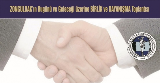 Genel Maden İşçileri Sendikası (GMİS), “Zonguldak hepimizin, Herşey Zonguldak için” sloganıyla Zonguldak’ın bugünü ve geleceği üzerine görüş alışverişinde bulunmak için Birlik ve Dayanışma Toplantısı düzenleyecek.Toplantıya Zonguldak Valisi, Zonguldak Milletvekilleri, siyasi partilerin il başkanları, Belediye Başkanları, İl Genel Meclisi üyeleri, sivil toplum örgütleri ile meslek örgütlerinin başkanları davet edildi.Geniş katılımlı olması beklenen toplantı, 3 Mart 2017 Cuma günü Saat: 18.00’de Emirgan Otel’de gerçekleştirilecek.